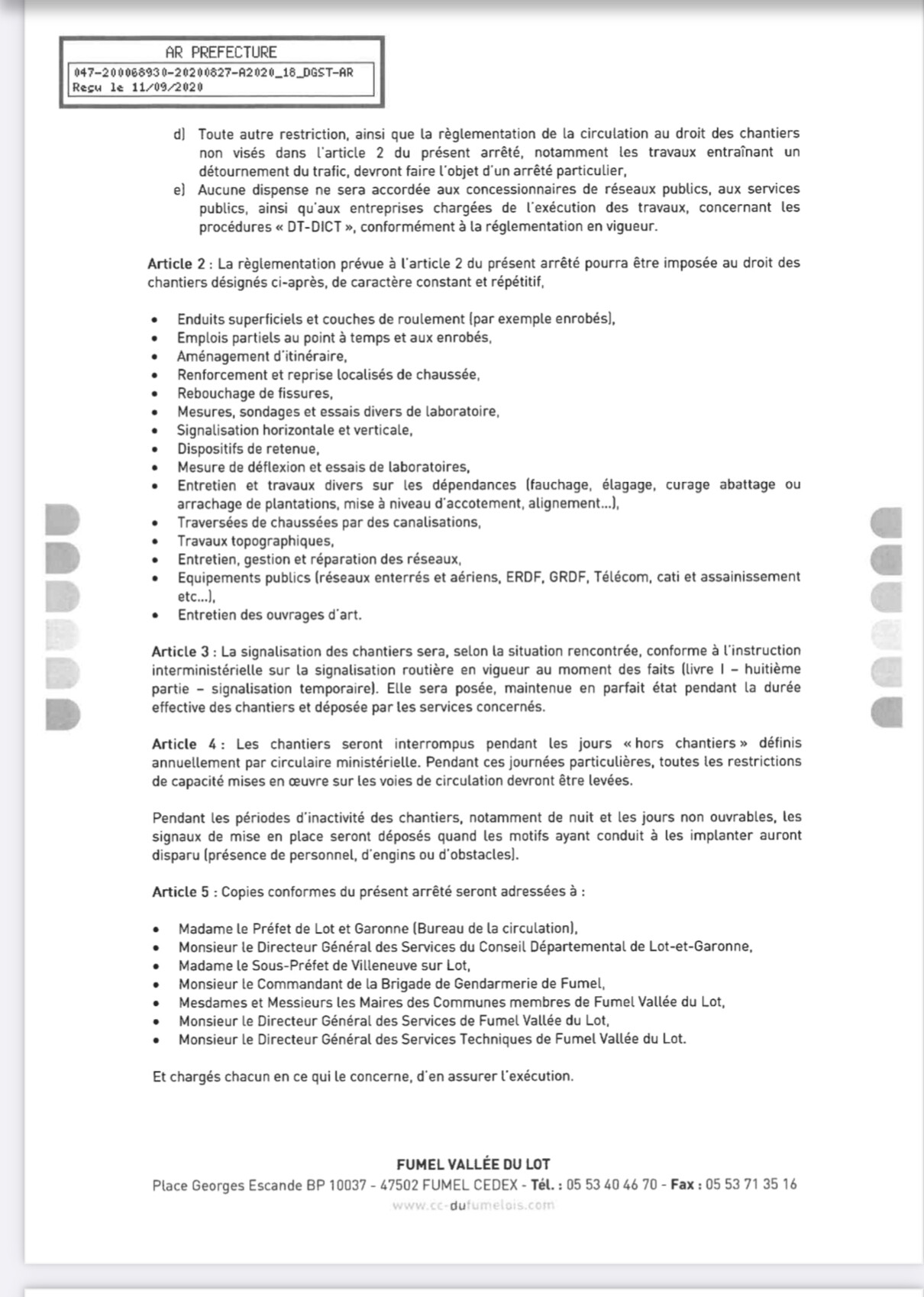 1° passe dite passe de sécurité : extrait du règlement de voirie de la Communauté de Communes Fumel Vallée du Lot : L'accotement sera fauché dans la limite de deux largeurs de passe ou de la crête du fossé lorsque l'accotement est inférieur à la largeur de deux passes.