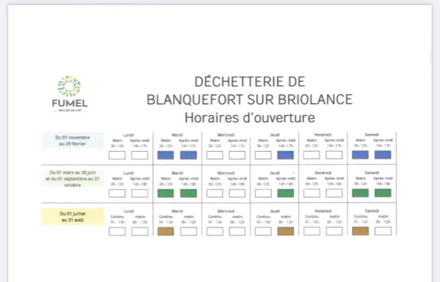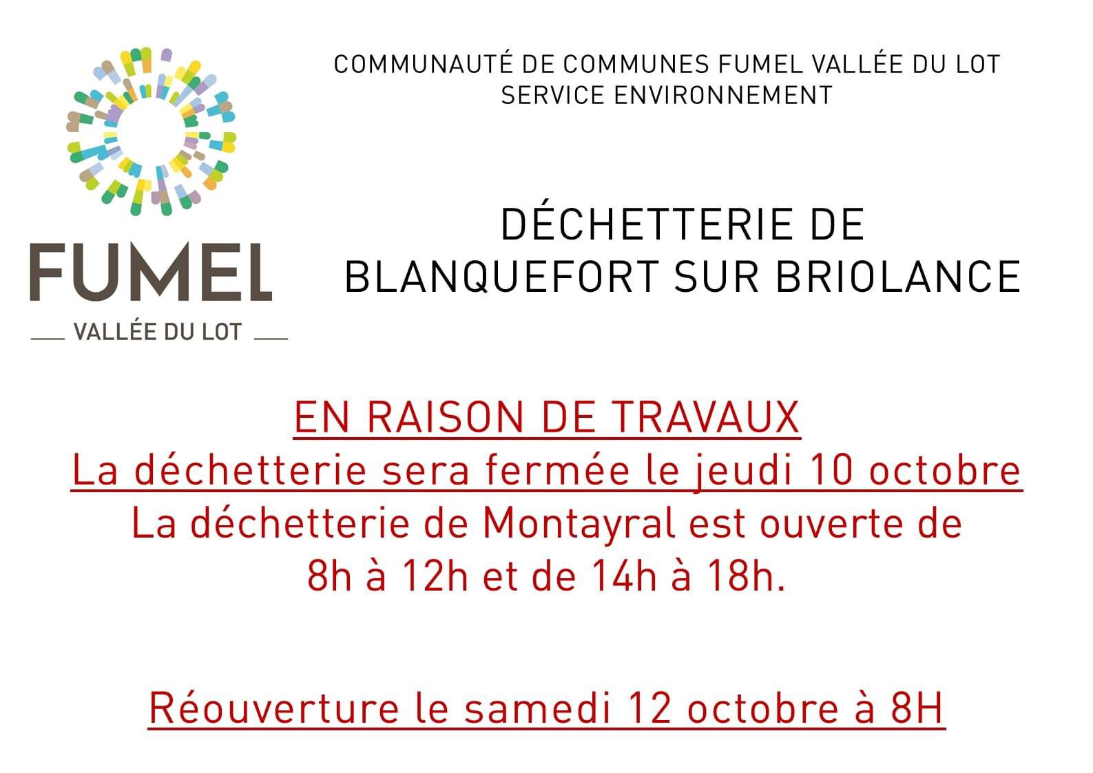 Je vous informe que les déchetteries de Montayral, Penne d’Agenais et Blanquefort sur Briolance seront exceptionnellement fermée ce jeudi de 14h à 15h.