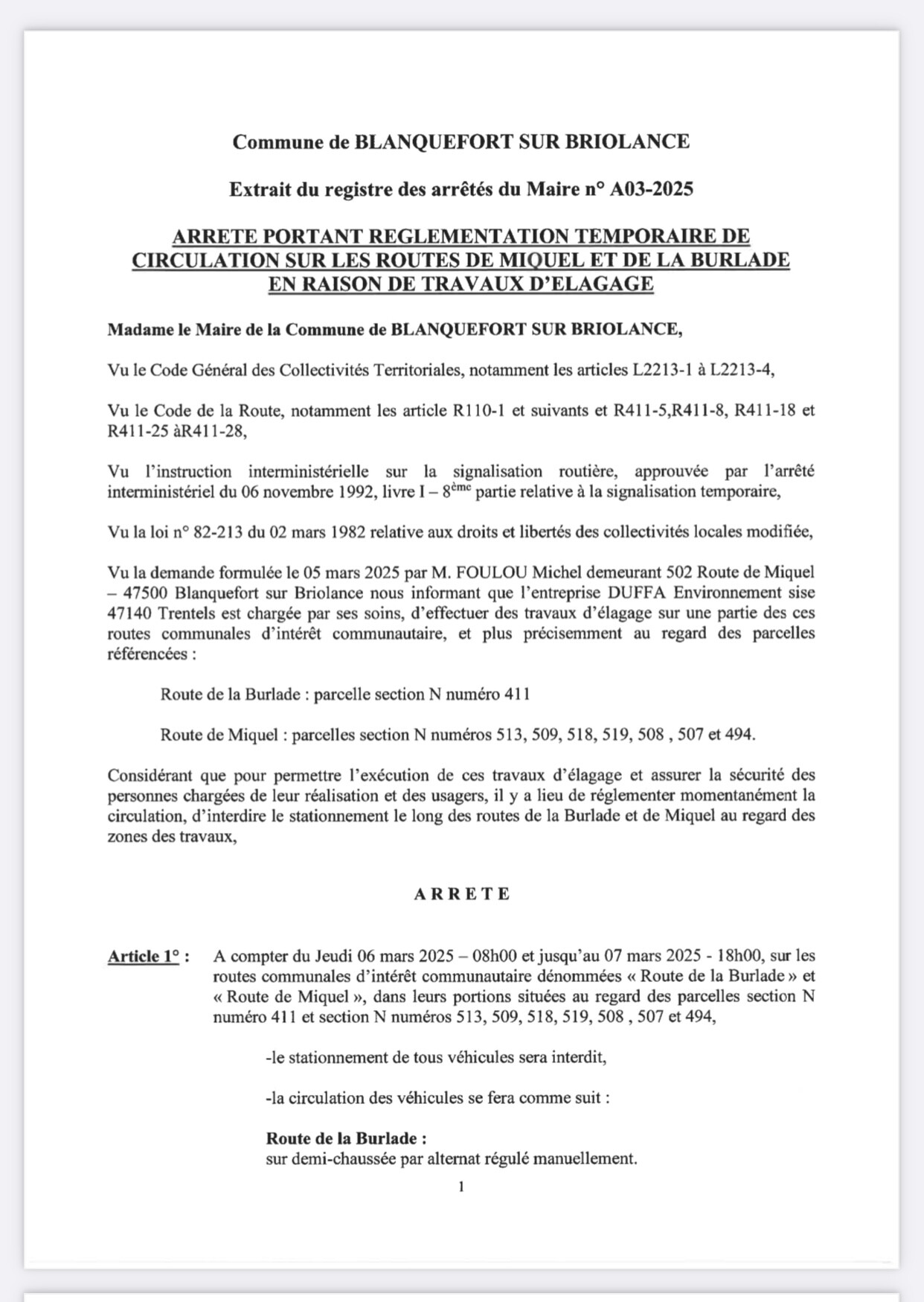 « L’entreprise DUFFA demande aux riverains (vos administrés), de tenir propre et d’identifier visuellement :