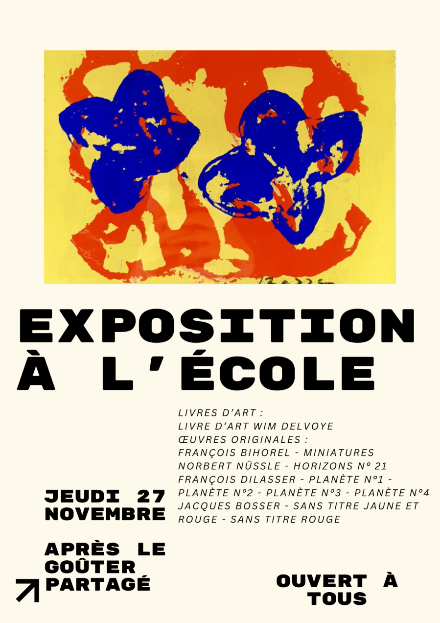 Nous organisons un goûter partagé jeudi 27 novembre à 16h30 puis la présentation par les enfants de l'exposition vers 17h00.