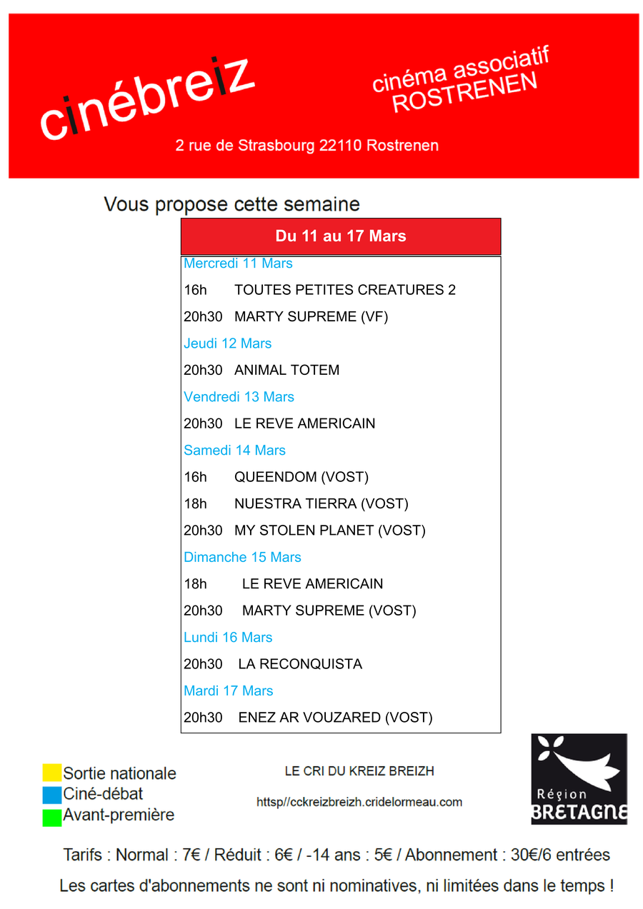 Cette semaine, au Cinébreiz, vous pourrez découvrir :