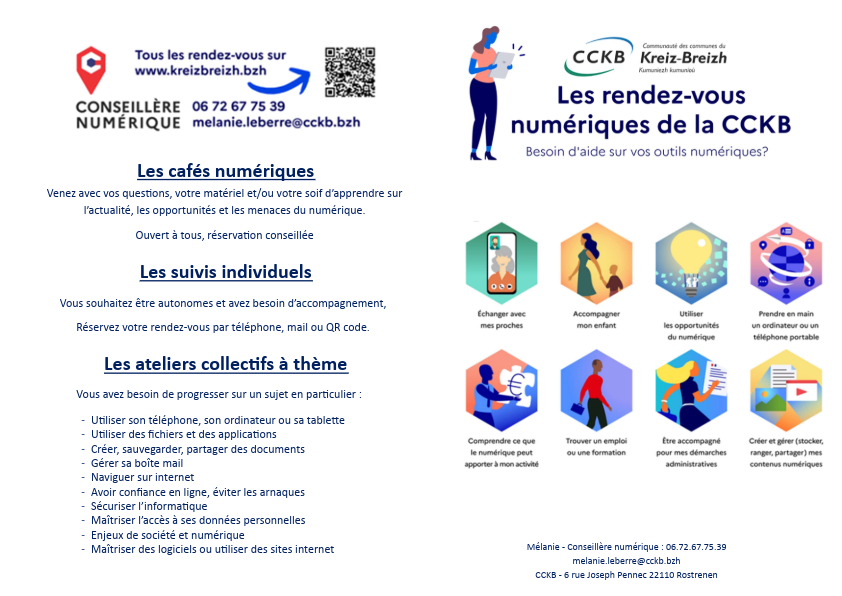 Tiphaine, avec ou sans rdv, le 3ème mercredi du mois, de 16h à 18h, dans les locaux de l’ESJ (47 Rue René le Magorec, 22110 Rostrenen). Pour la contacter : 06 42 55 83 03