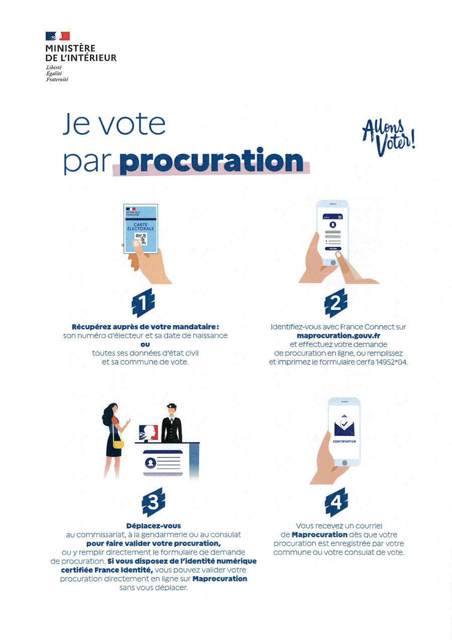 muni de votre pièce d'identité, du n° d'électeur et de la date de naissance de votre mandataire.