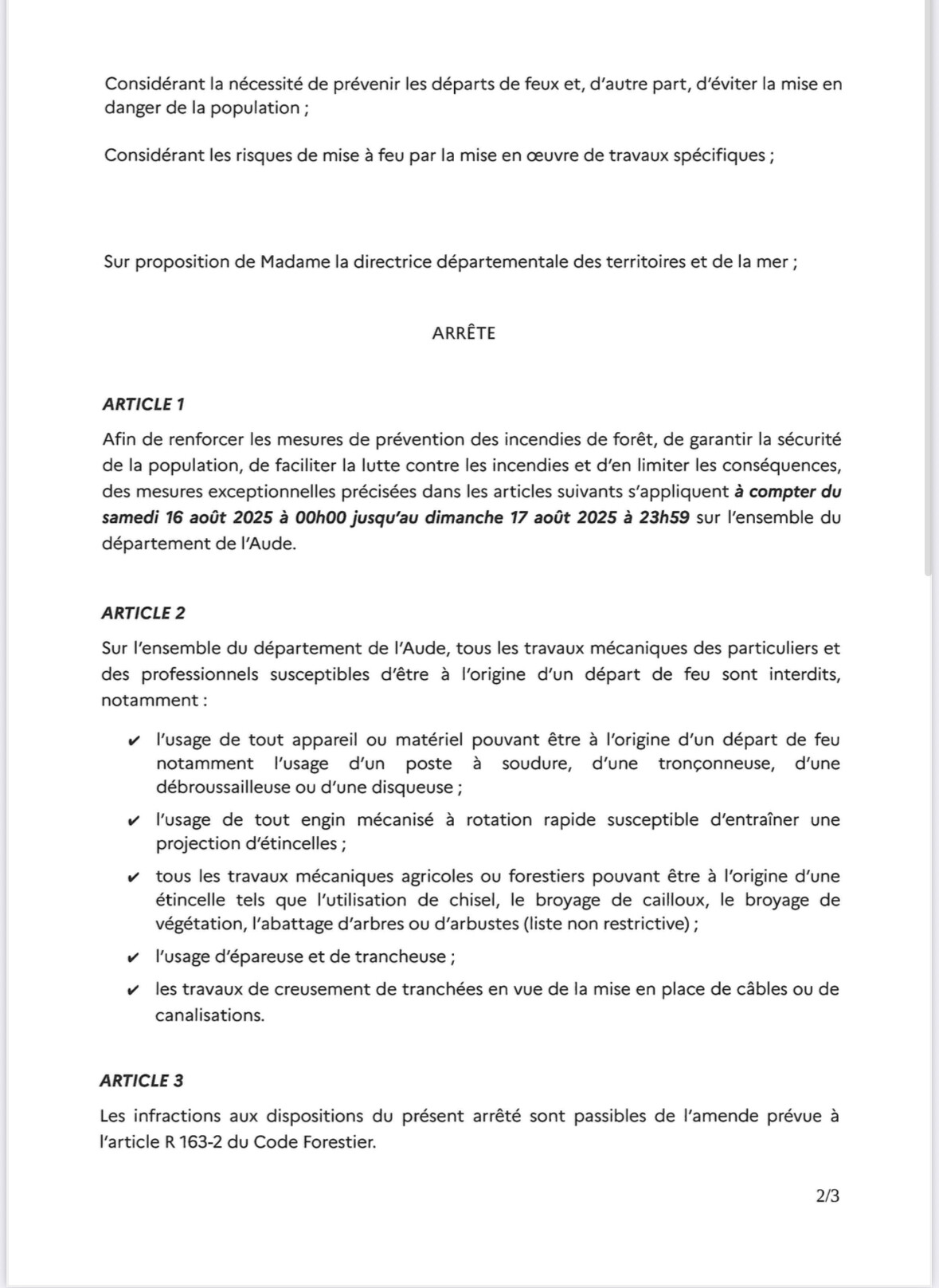 Grace à eux la commune n a eu aucun départ de feu.