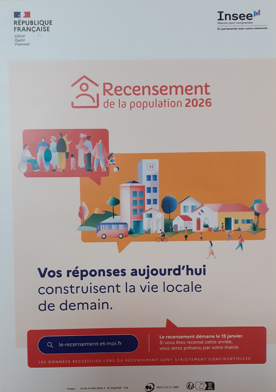 Le recensement de chaque habitant de la commune est obligatoire, les données recueillies restent confidentielles et sont uniquement utilisées pour des statistiques.