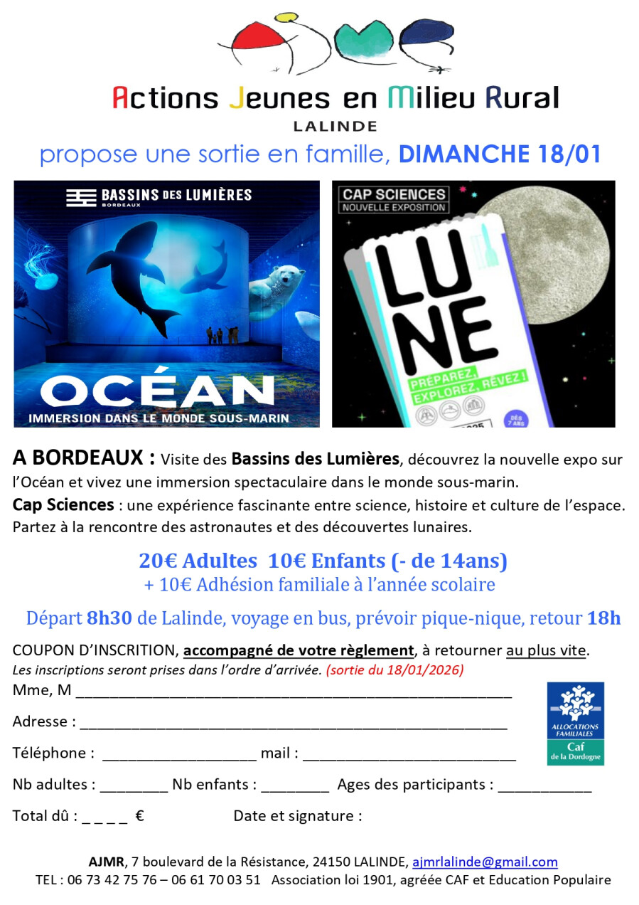 Départ 8h30 de Lalinde, voyage en bus, prévoir pique-nique, retour 18h