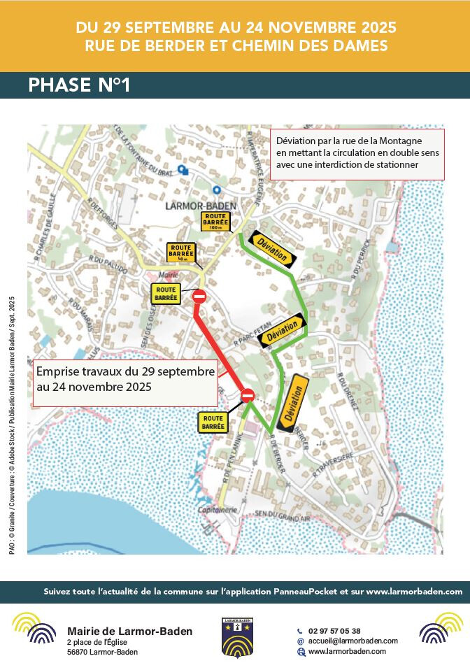 Point au 02 octobre 2025 : rue de Berder déviée par rue du Verger