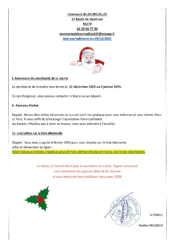 La commune est heureuse de mettre à disposition de ses habitants l’application PanneauPocket. Par cet outil très simple, elle souhaite tenir informés en temps réel les citoyens de son actualité au quotidien, et les alerter en cas de risques majeurs. Cette solution gratuite pour les habitants, sans récolte de données personnelles et sans publicité, permet d’établir un véritable lien privilégié entre le maire et ses citoyens.