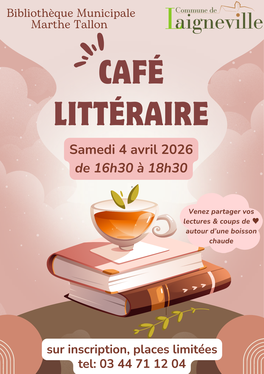 Le prochain café littéraire aura lieu le SAMEDI 4 AVRIL de 16h30 à 18h30. 📚 Un moment convivial pour parler de vos lectures et repartir avec de nouvelles idées !