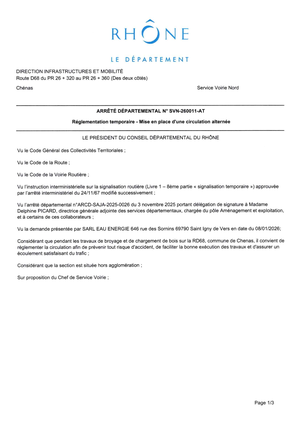 ⚠️ Arrêté de circulation de la RD 68 du 22/01/2026 8h jusqu'au 22/04/2026 à 17h.