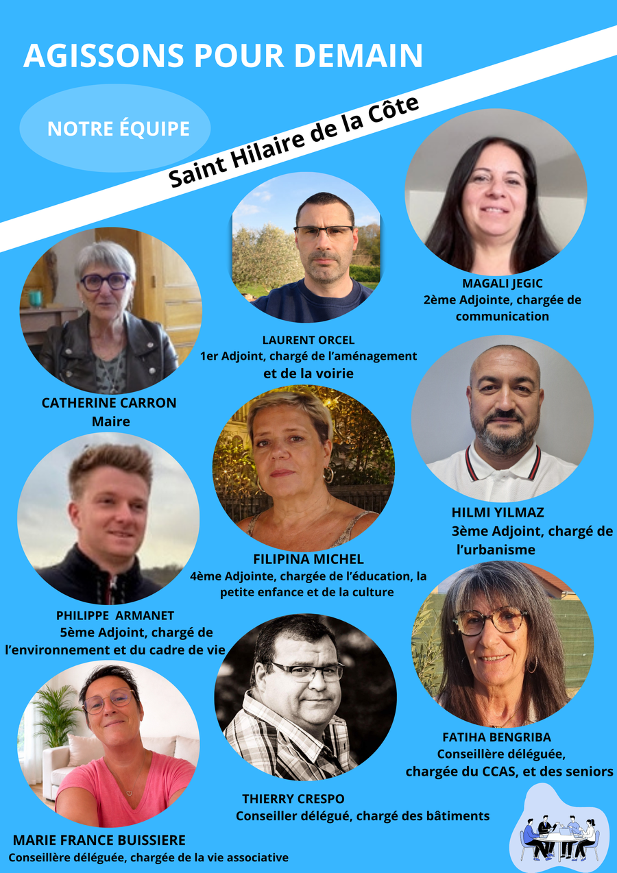 Une équipe qui rassemble toutes les générations, toutes les sensibilités et toutes les énergies de notre commune. Des femmes et des hommes aux parcours professionnels riches, profondément investis dans la vie associative et attachés à notre territoire.