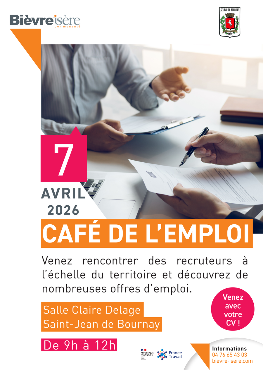 ☕️ Bièvre Isère et la commune de Saint-Jean de Bournay organisent une nouvelle édition du Café de l'emploi :
