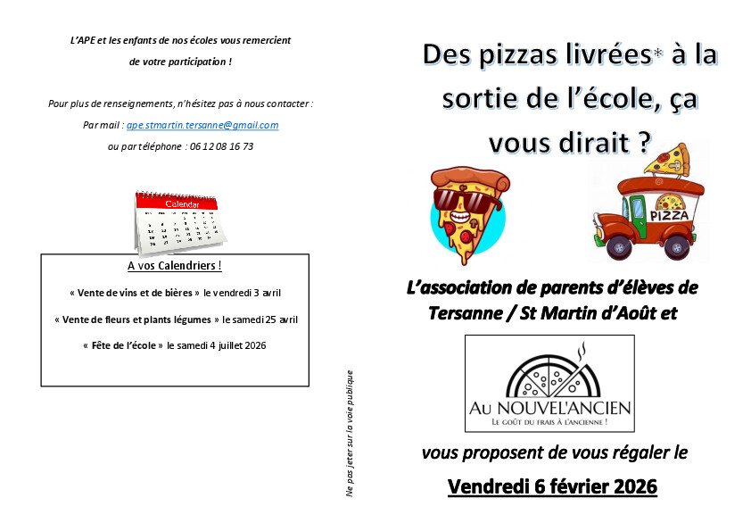 vous propose sa vente de pizzas en partenariat avec la pizzeria Au Nouvel'Ancien. 😋🍕
