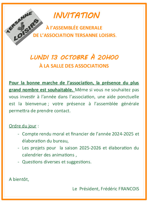 📢 L'association TERSANNE LOISIRS