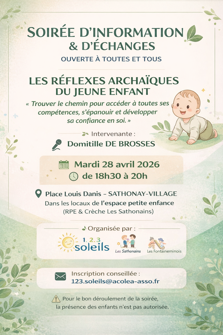 Le Relais Petite Enfance 1.2.3 Soleils, les crèches Les Sathonains et Les Fontaineminois organisent une soirée d’information et d’échanges ouverte à toutes et tous.