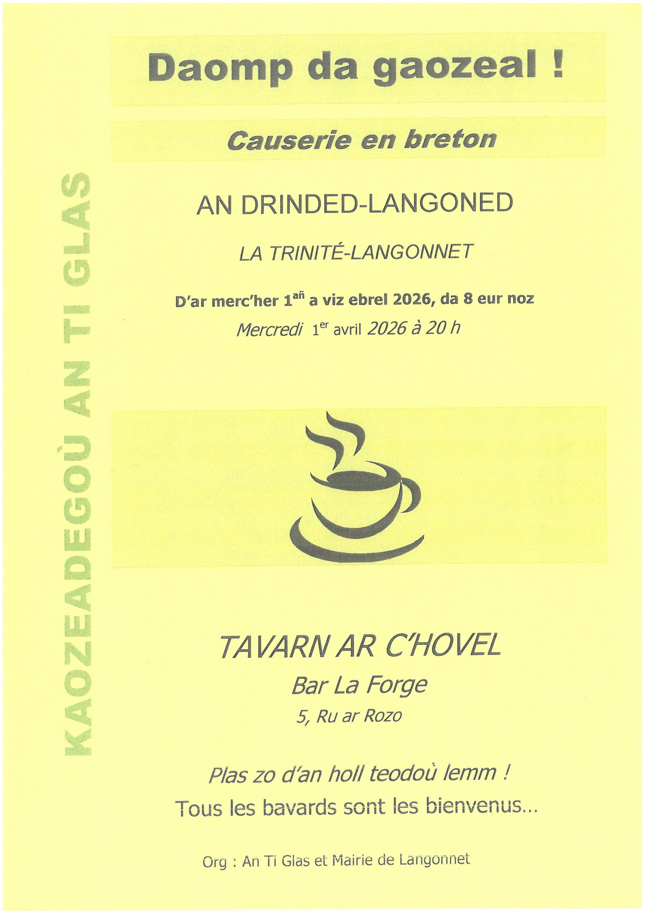 11 h 00 à La Trinité, à 12 h 00 à Langonnet. À l'issue de ce rassemblement, un vin d'honneur sera offert par la municipalité.