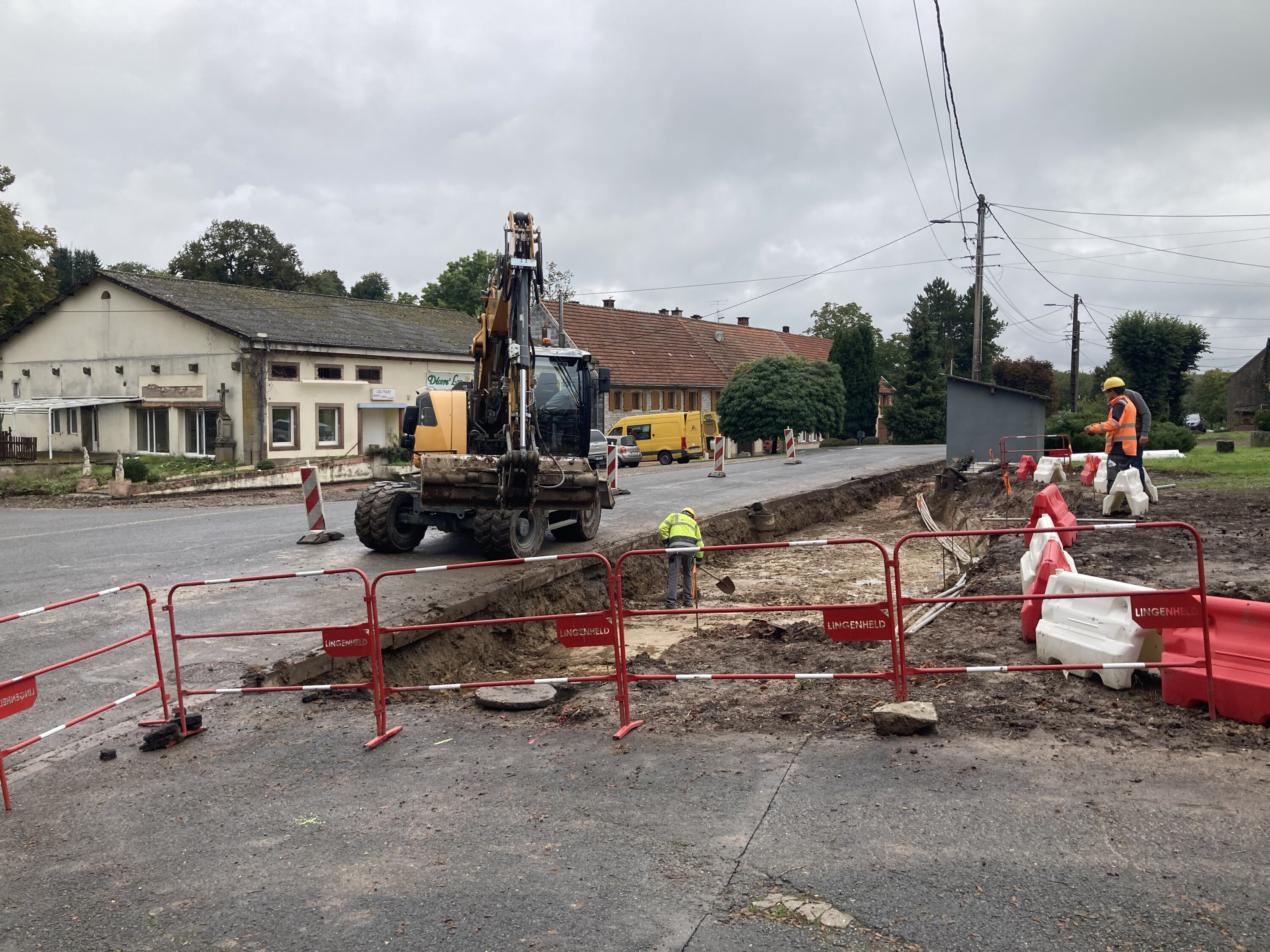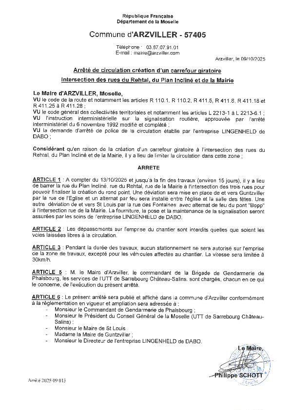 Un feu alterné (points orange) sera mis en place au niveau du pont et avant le cabinet médical cette route n’ayant plus qu’une seule voie de circulation.
