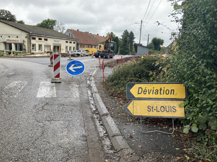 2- Rue du plan incliné et rue des fontaines, les voitures venants de Saint-Louis/Lutzelbourg et inversement, emprunteront la rue des fontaines tracé bleu (2).