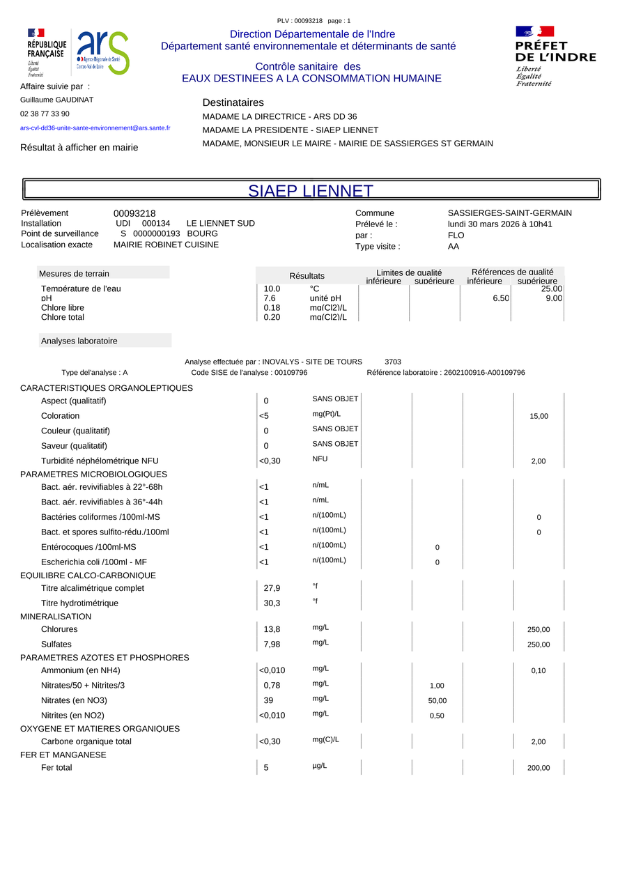 Les Techniciens sont actuellement sur une fuite sur le secteur de Neuvy-Pailloux,