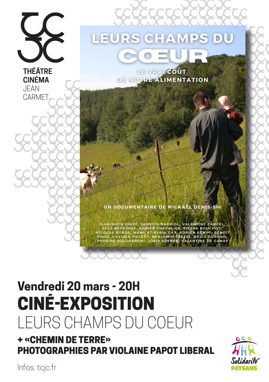 le 20/03 projection du documentaire "Leurs Champs du Cœur" en présence du réalisateur. Vernissage de l'exposition "Chemin de Terre" de Violaine Papot-Liberal à 18h.