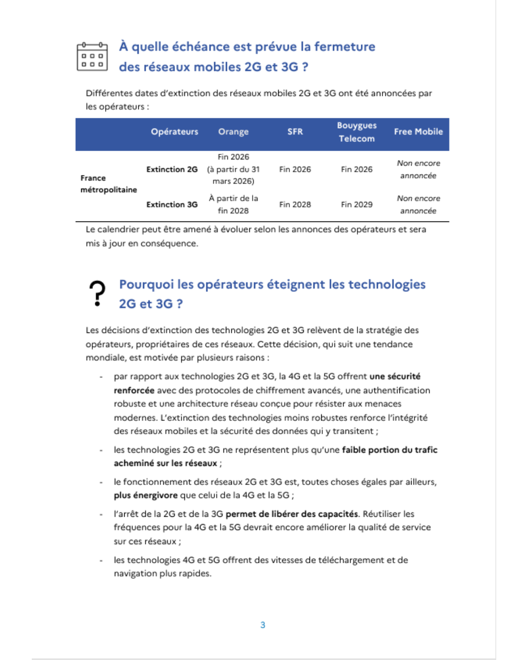 📅 La 3G est prévue pour être arrêtée à partir de fin 2028 – 2029 selon les opérateurs.