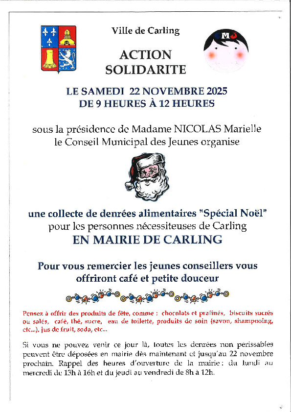 Pour son action solidarité "spéciale Noël", pour les Carlingeois les plus démunis.