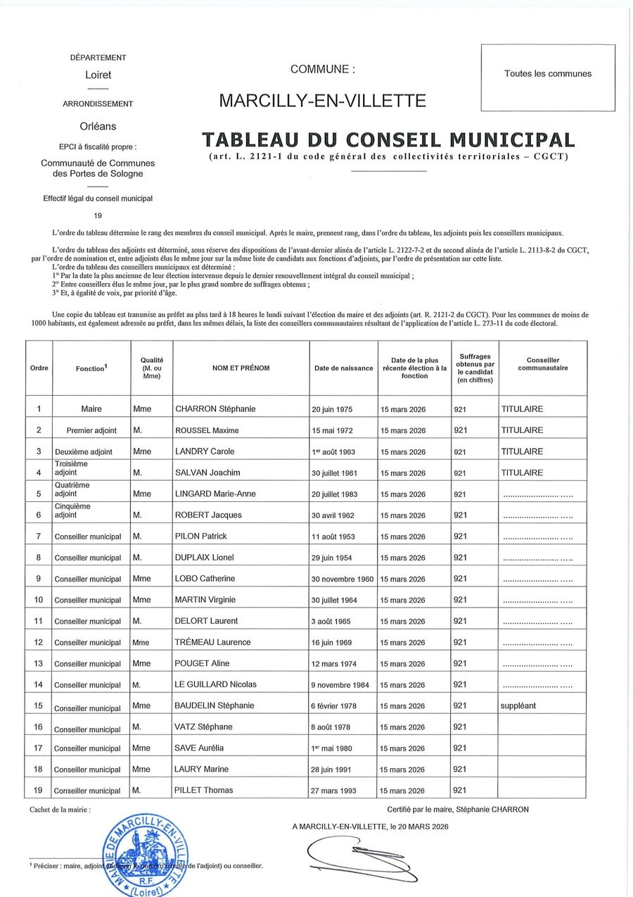 Tableau du conseil municipal