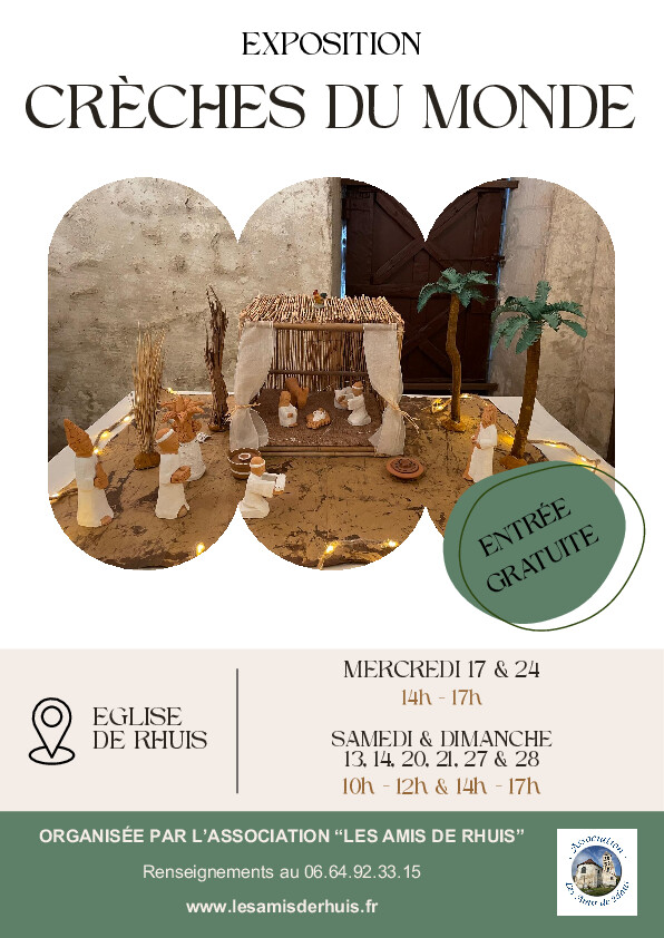 Une exposition de crèches du Monde aura lieu en l'église de Rhuis pendant Noël.