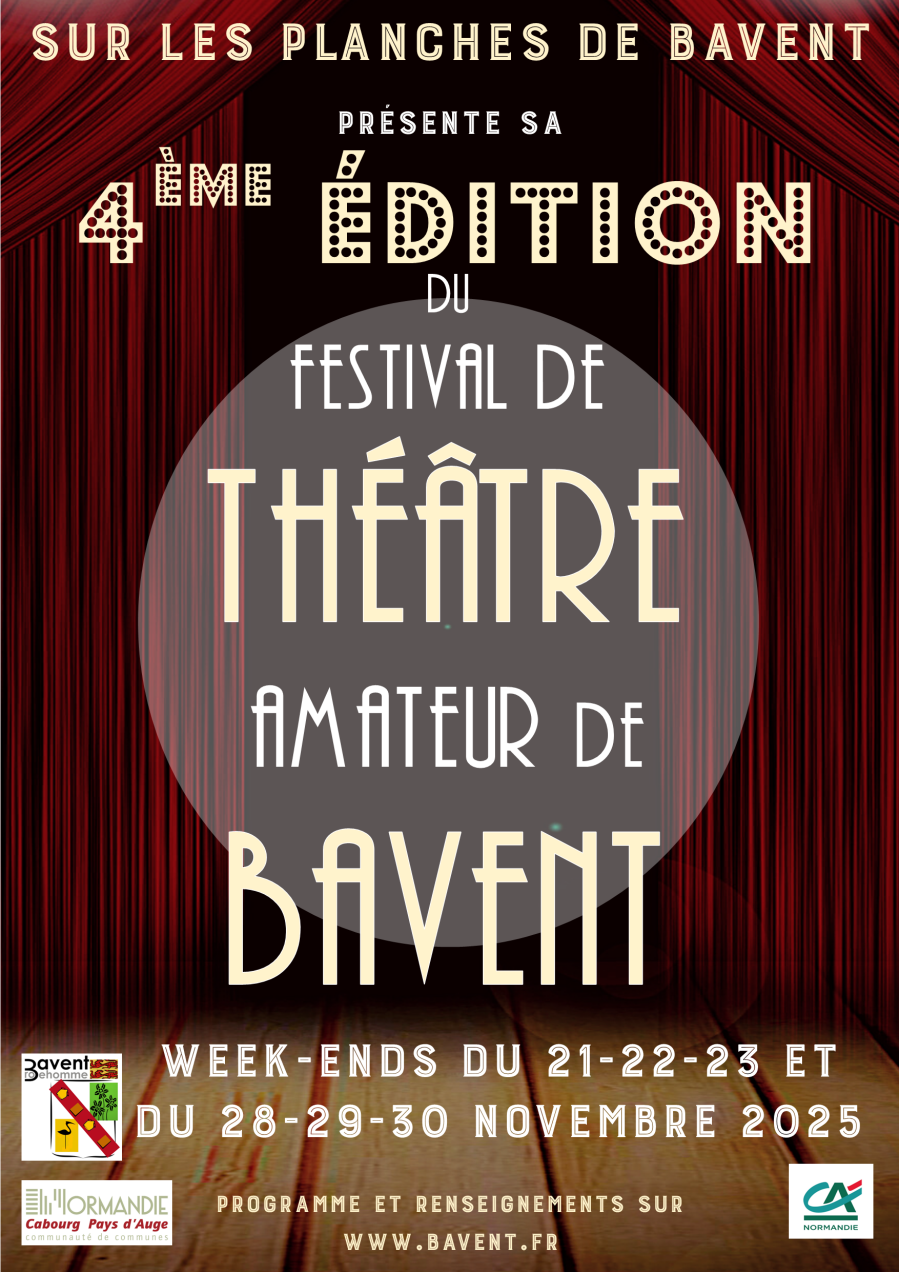 Du 21 au 30 novembre 2025, Bavent accueille la 4e édition de son Festival de Théâtre, avec une programmation riche en découvertes et en talents.