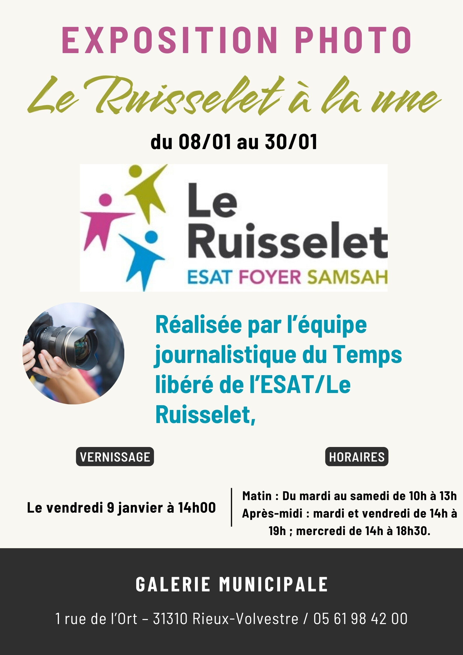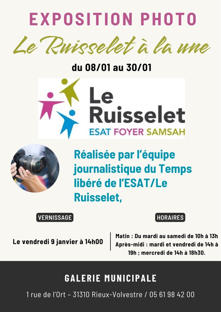 Le 9 janvier a eu lieu le vernissage de l’exposition photos « Le Ruisselet à la une ! » conçue par la Section temps libéré de l’ESAT/Le Ruisselet à la galerie municipale de Rieux.