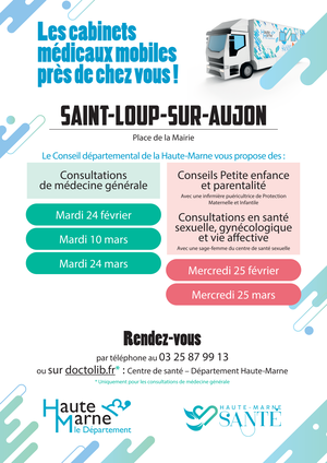 Pour votre bonne information, le cabinet mobile sera présent à Saint-Loup-sur-Aujon,