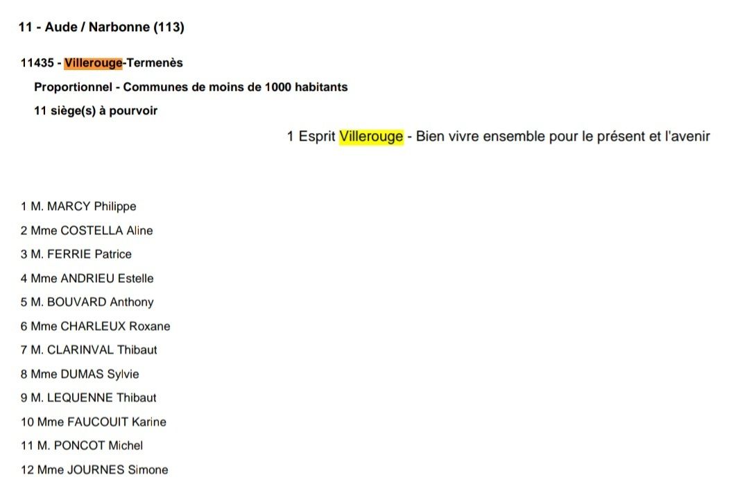 Voix obtenues par la liste conduite par Philippe MARCY : 102