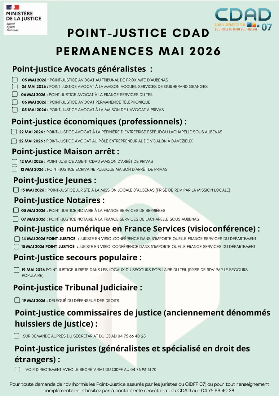 Ces permanences, appelées Point Justice, sont organisées sur tout le département de l'Ardèche.