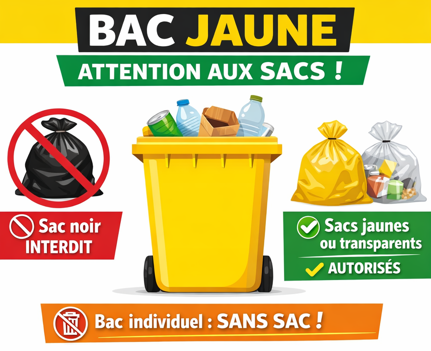 ➡️ Les emballages doivent être jetés en vrac, sans sac.