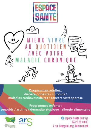 L'Espace Santé de Remiremont accompagne gratuitement les habitants atteints de maladies chroniques ou souhaitant améliorer leur santé (diabète, surpoids/obésité, maladies cardiovasculaires, cancer, asthme...).