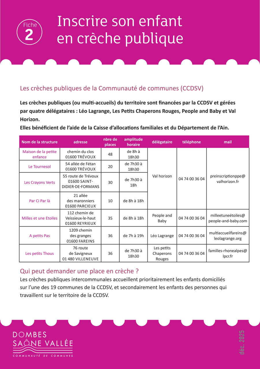 Si vous souhaitez pré-inscrire votre enfant dans l’un des 7 équipements de la Communauté de Commune Dombes Saône Vallée (CCDSV),