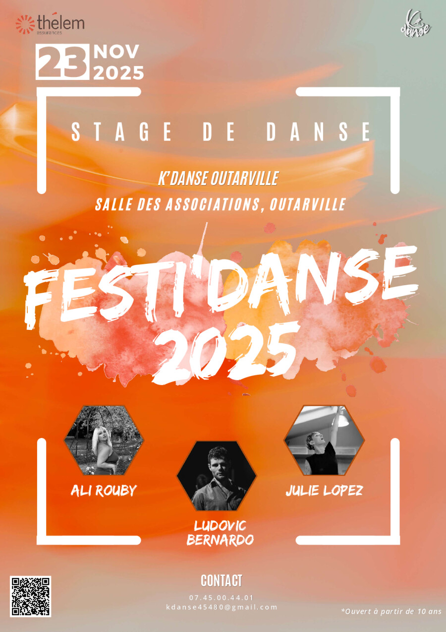 K'danse a le plaisir de vous annoncer le retour de son stage de danse annuel qui se tiendra le Dimanche 23 Novembre 2025 à la Salle des Associations d'Outarville 🩰