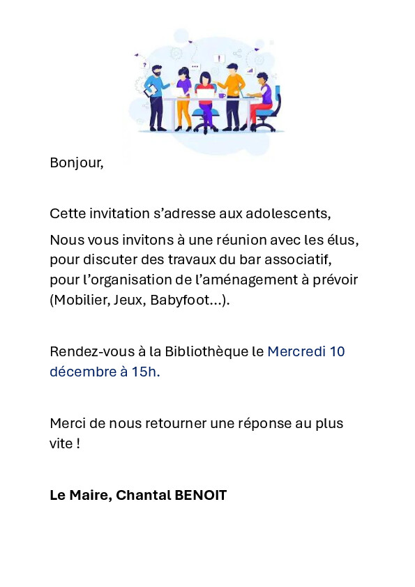 Mme le Maire souhaite rencontrer les jeunes de la commune