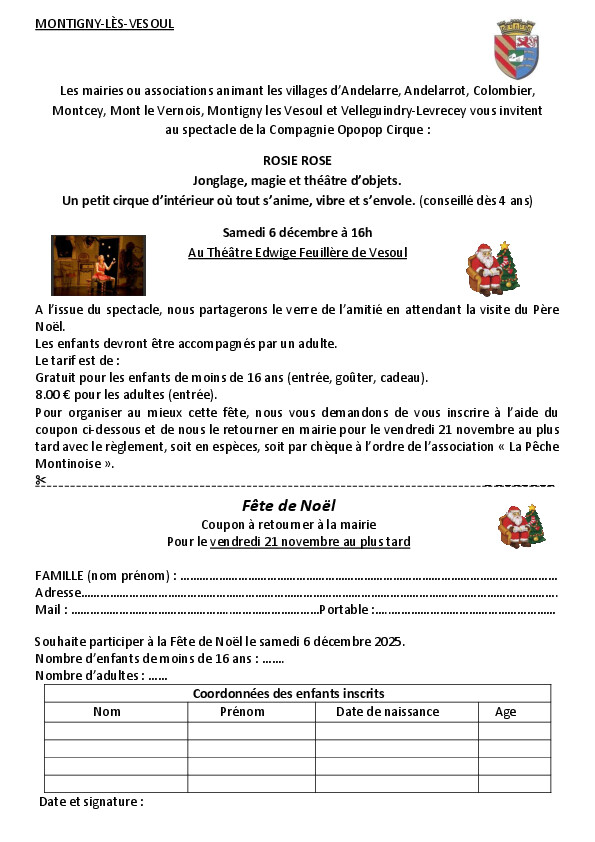 Merci de retourner le coupon ci-dessous ainsi que le règlement à la mairie de Montigny-Lès-Vesoul avant le vendredi 21 novembre 2025.