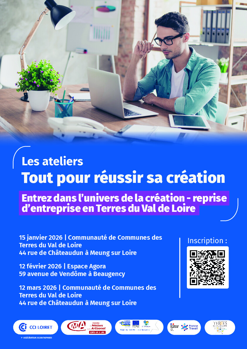 Ces ateliers sont organisés par la Chambre de Commerce et d’Industrie du Loiret et la Chambre de Métiers et de l’Artisanat Centre Val de Loire, en partenariat avec la Communauté de Communes des Terres du Val de Loire et France Travail.