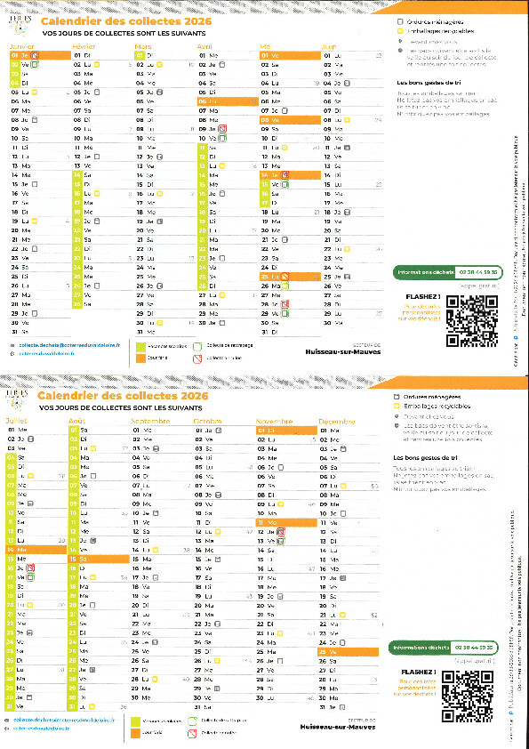 du calendrier des collectes 2026