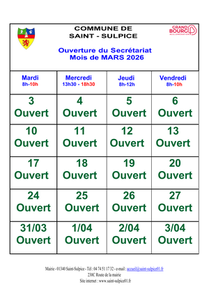 Horaires de la mairie de Saint-Sulpice :