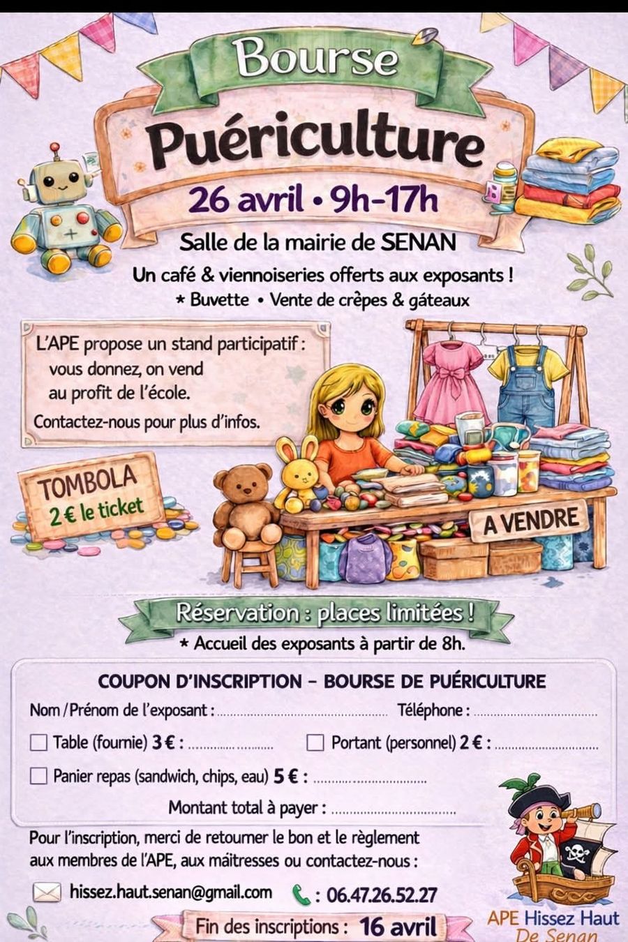 Sortez vos agendas ! Les 25 et 26 avril 2026, notre commune s'anime pour un week-end placé sous le signe de la convivialité et de la seconde main. Que vous cherchiez la perle rare ou de quoi équiper les plus petits, c'est à Senan que ça se passe !
