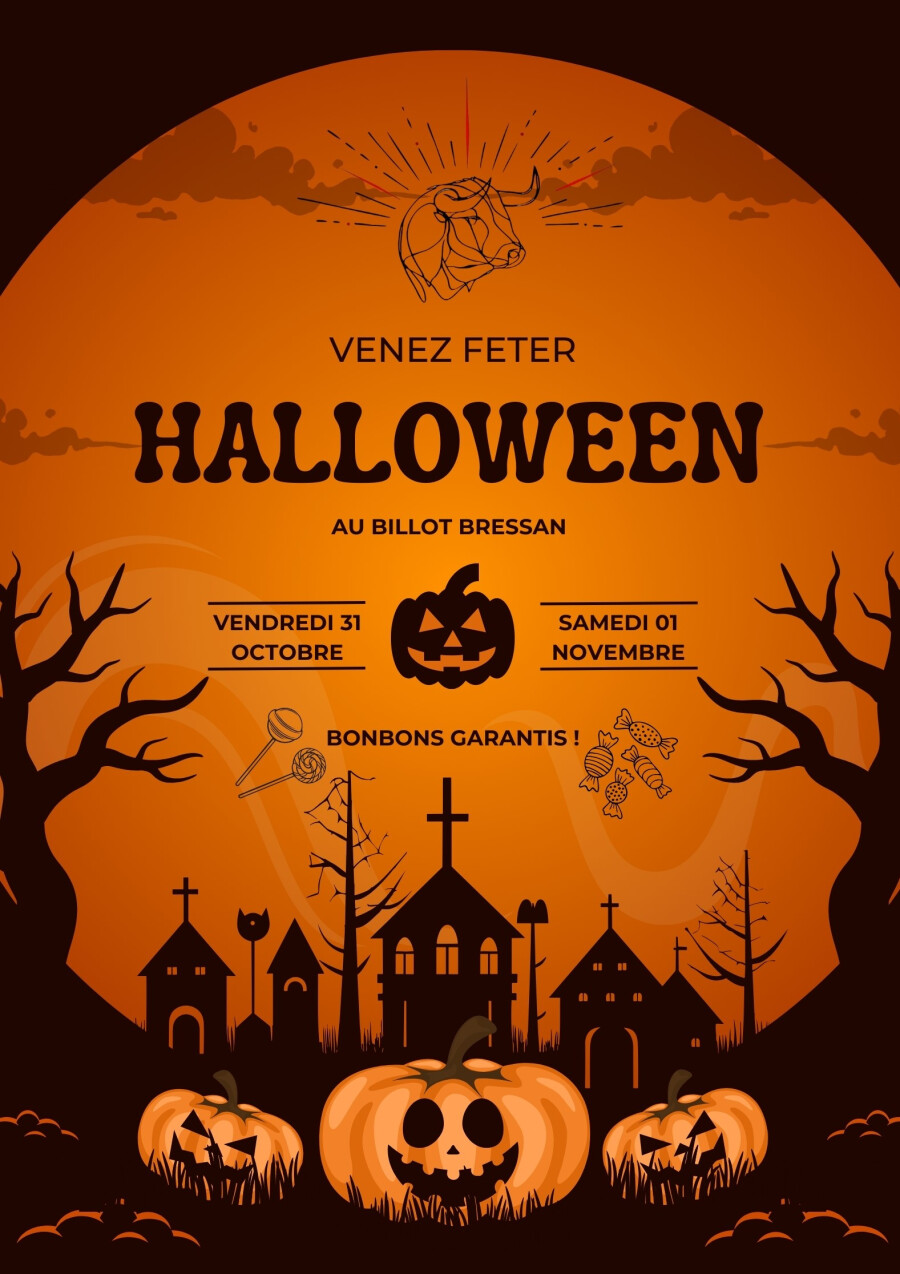 Venez partager un moment festif et convivial au Billot Bressan, dans une ambiance d’Halloween pleine de surprises 🕷️