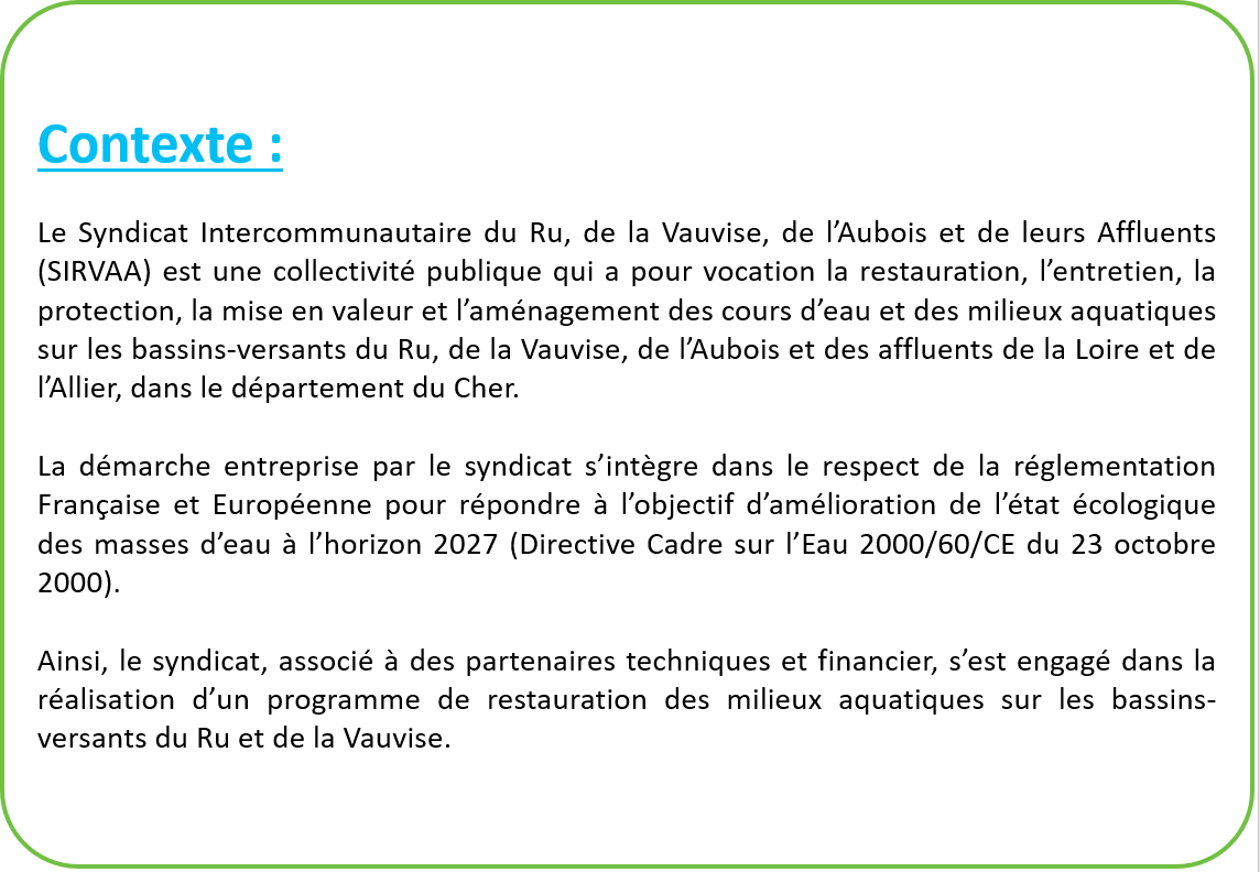 Le Syndicat Intercommunautaire du Ru, de la Vauvise, de l’Aubois et de leurs Affluents (SIRVAA) va engager des travaux