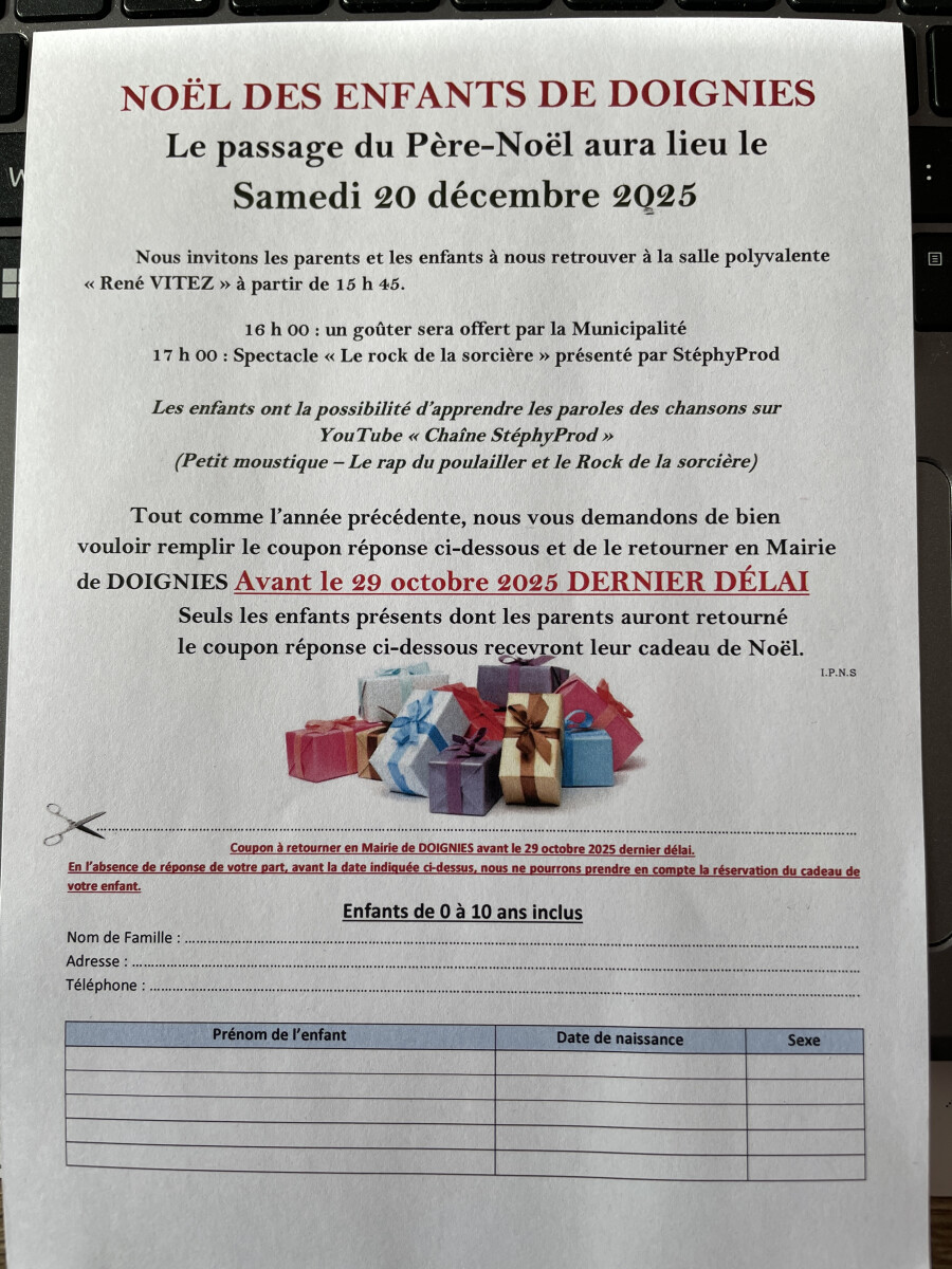 Retourner le coupon en mairie avant le 29 octobre 2025