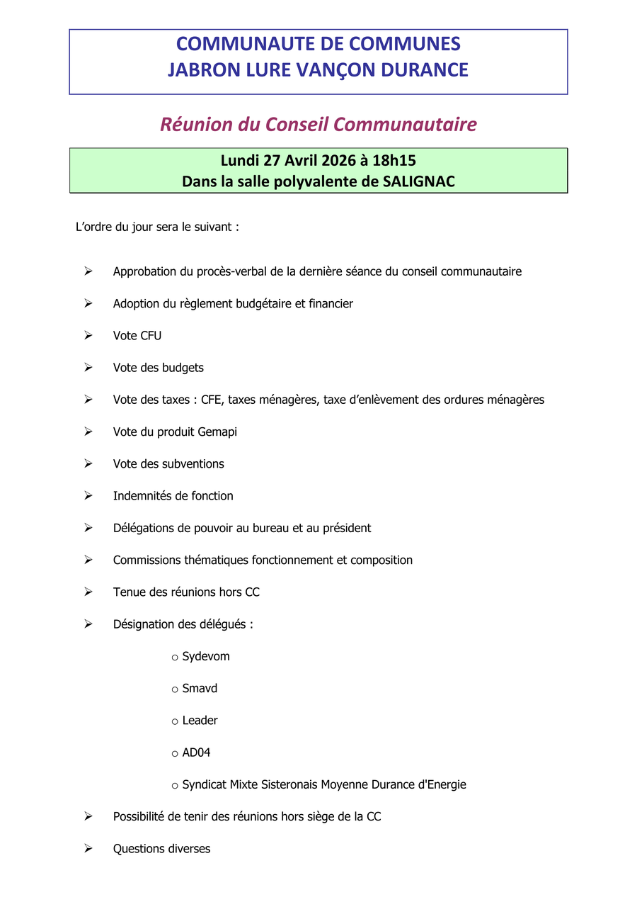 Au nom de la CCJLVD et de tous les habitants, nous lui souhaitons la bienvenue !