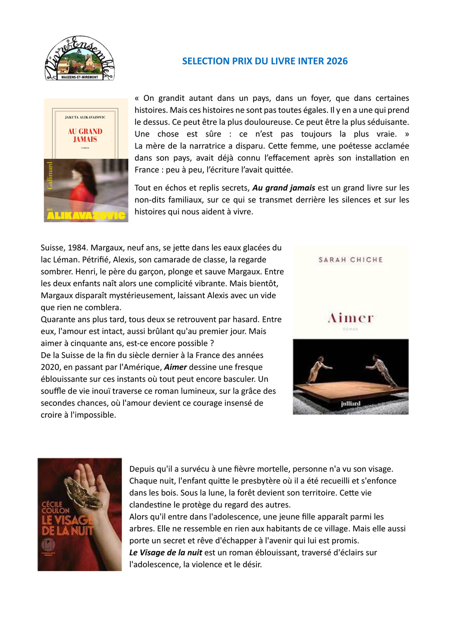 Les dix livres sélectionnés pour concourir au prix du Livre Inter 2026
