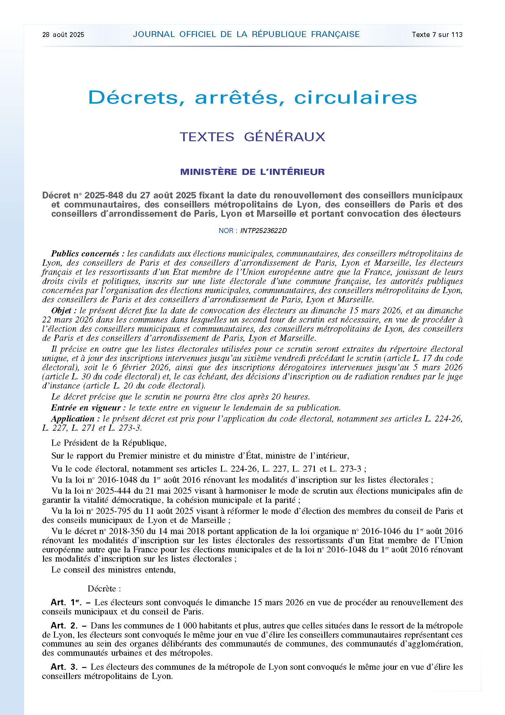 Les élections municipales 2026 se tiendront le 15 mars et en cas de second tour le 22 mars.