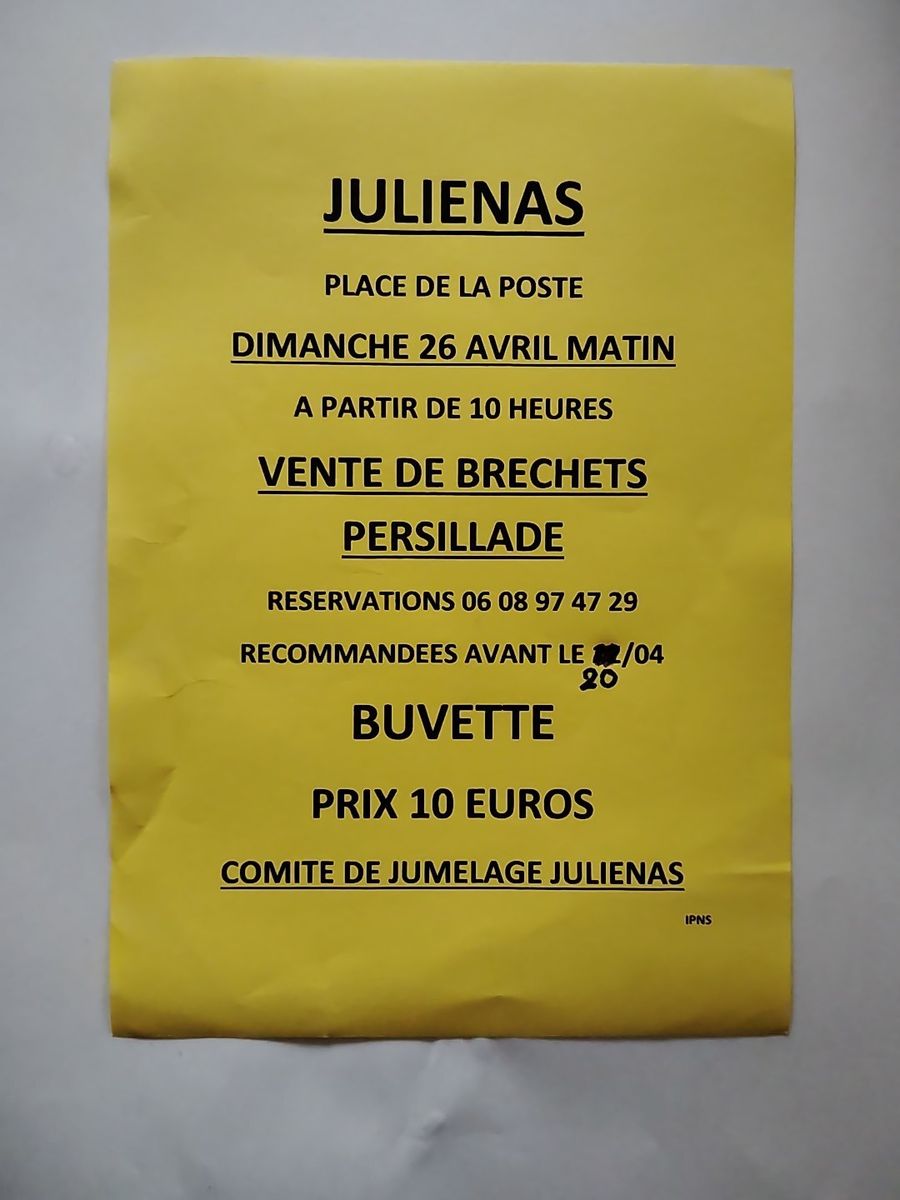 "À tous les habitants de la commune, le Comité des Fêtes et d'Animations de Juliénas vous informe que la location de matériel est toujours possible !